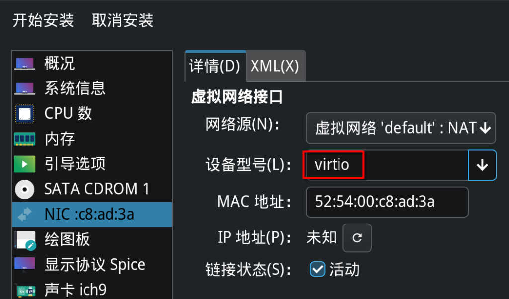 网络接口类型选择virtio,提高效率