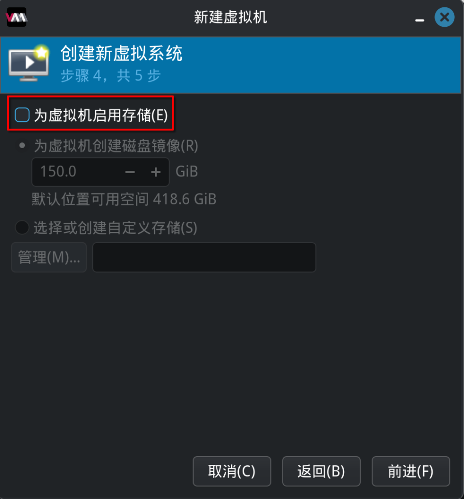 不为虚拟机添加存储,因为后续我们要手动添加压缩存储