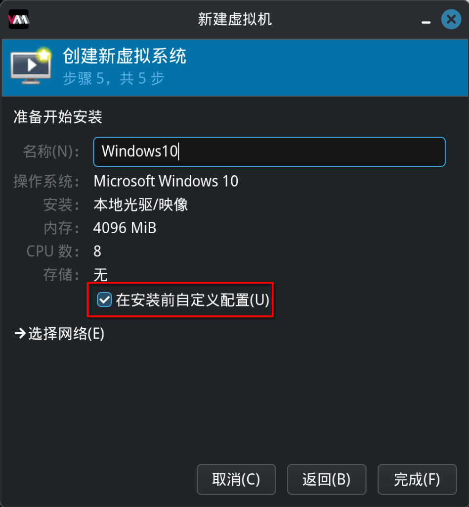 勾选在安装前自定义配置