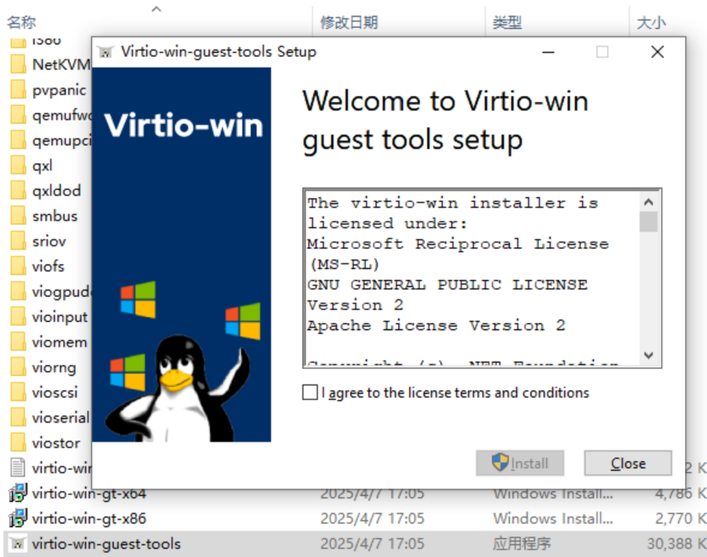 Virt-Mangaer本身并不支持主机和虚拟机的剪切板共享,因此需要安装spice-guest-tools来实现剪切板共享,可以直接在之前挂载的Virtio镜像内通过virto-win-guest-tools来安装